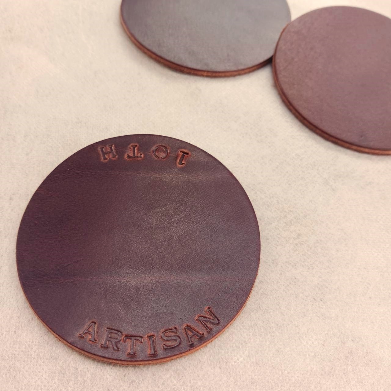 Instagramでアルチザンのアカウントをフォロー、投稿に「いいね!」した画面をスタッフに提示していただくと、牛革製コースターをプレゼントし、お好きな文字(英数字)の刻印体験をしていただけます。
