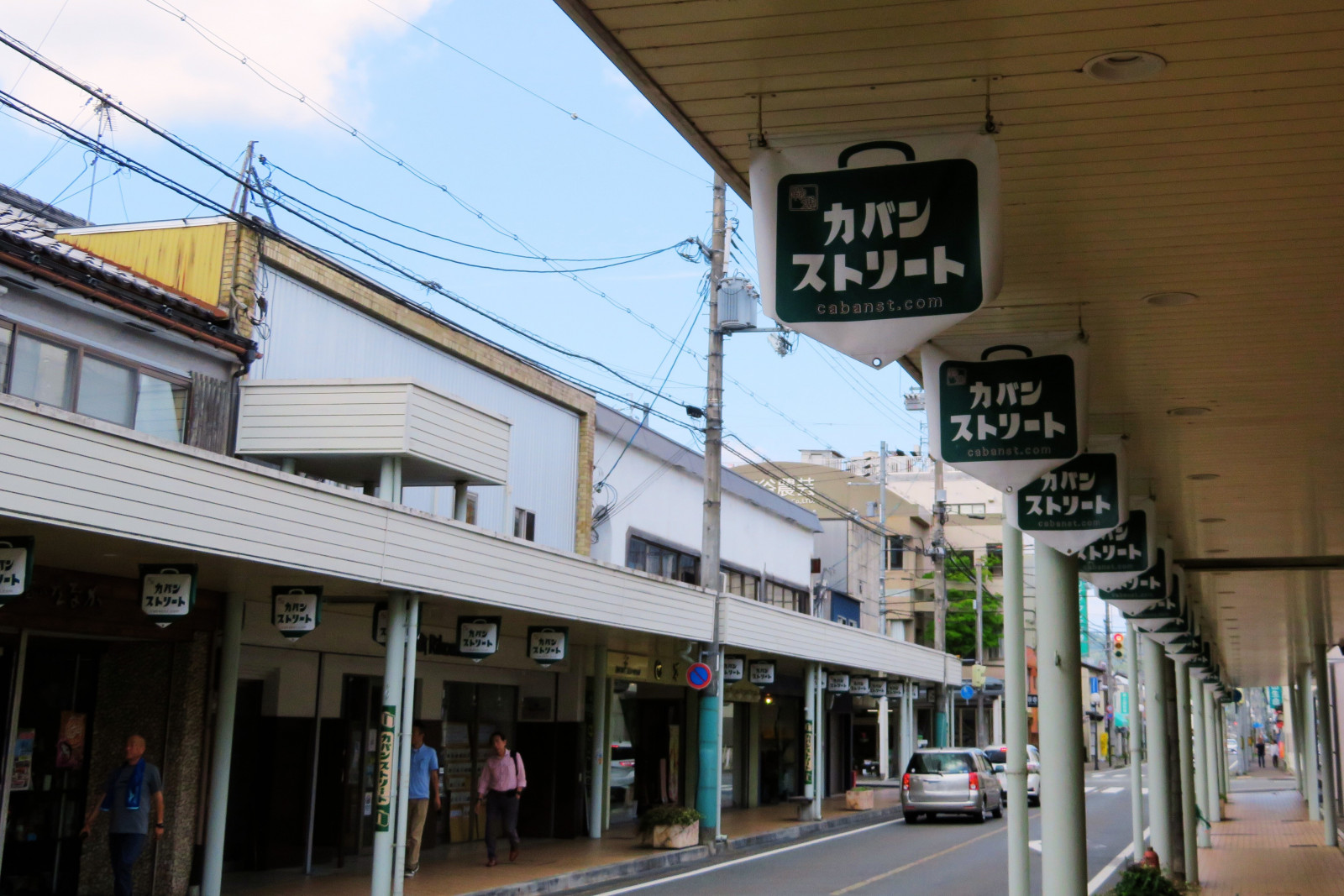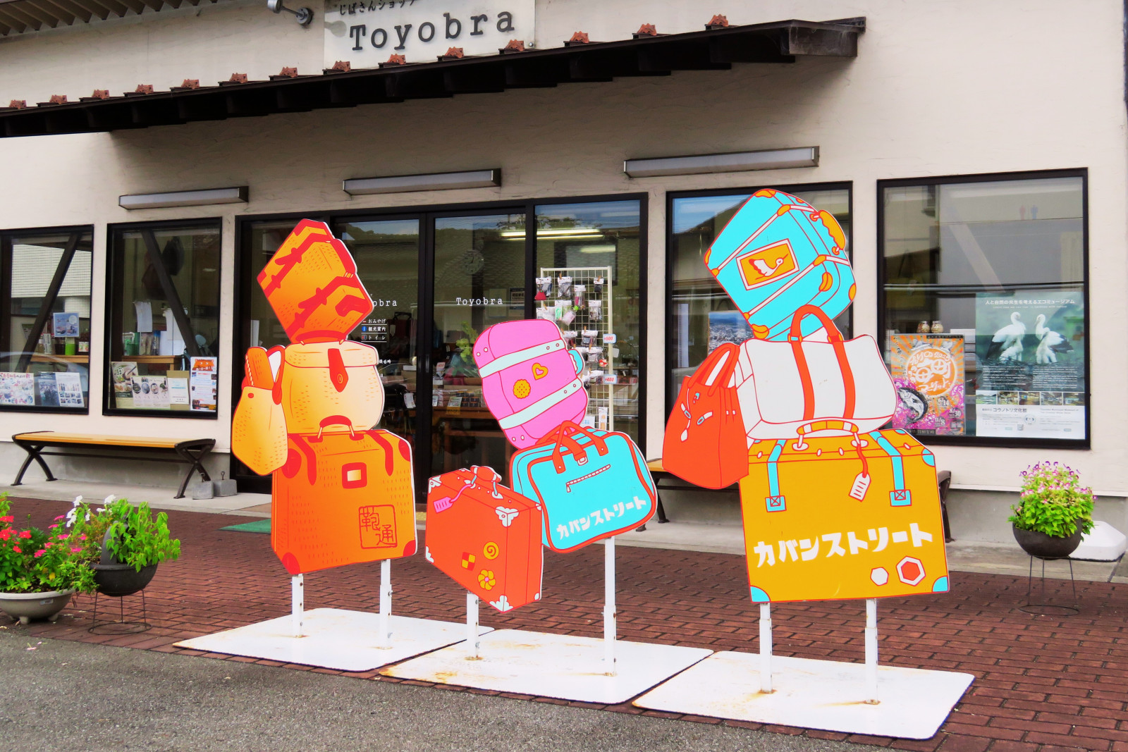 兵庫県豊岡市中心部の「宵田(よいだ)商店街」周辺エリアの名称です。カバン専門店やカバン修理店、カバンを取り扱うお店などが15店舗以上点在しています。また、ストリート周辺には「カバンの自動販売機」やカバンをモチーフにしたバス停やベンチなど様々なオブジェもございます。スタンプラリーで、カバンの街の散策をぜひお楽しみください。