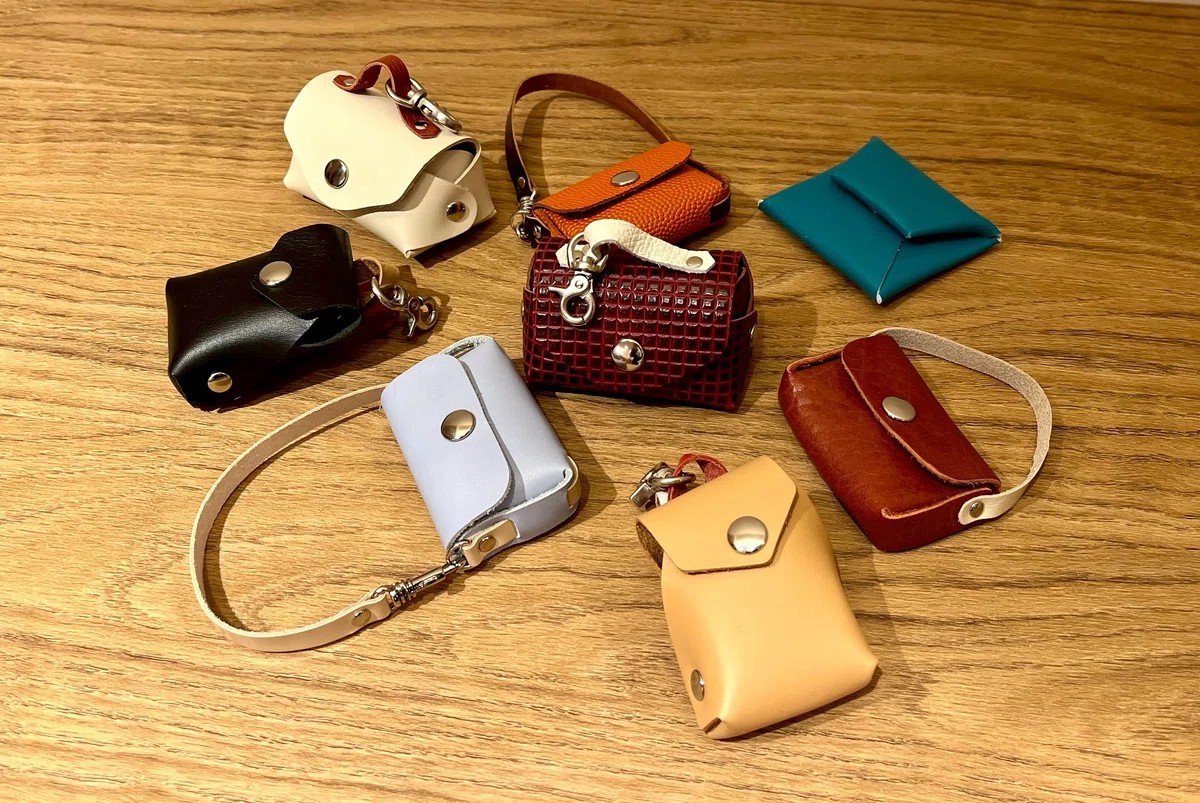 ガチャの中身は、スタッフ手作りの革小物です。バッグに取り付けできるミニサイズのチャームや、レザーコインケースなどイロイロご用意。画像はイメージですので、中身は随時変更・追加いたします。