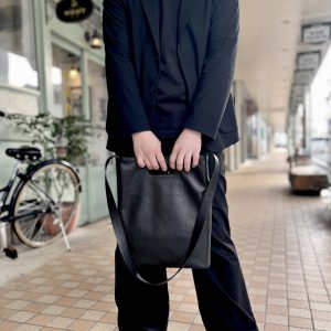 シンプルなデザインでユニセックスに持てるオンオフ兼用トートバッグ。